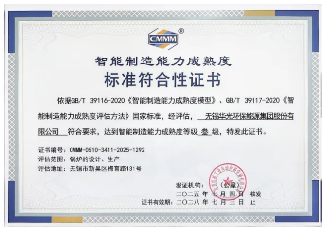 华光环能深化智能制造转型进入关键年。公司以系统规划为指导,以务实落地为原则,持续推进设计、制造、管理与服务全流程的数字化、智能化升级。相继通过国家智能制造能力成熟度三级认证、荣获江苏省先进级智能工厂和江苏省绿色工厂称号,并建立起高效运行的能源管理体系。整体运营效能与质量管理水平迈上新台阶。